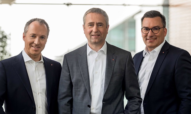 Die Sparkasse Vorderpfalz hat im Geschäftsjahr 2023 ein solides Ergebnis erzielt und hält Kurs. Das berichten die Vorstände der Sparkasse Vorderpfalz Thomas Traue (Bildmitte), Oliver Kolb (links) und Ulli Sauer (rechts).