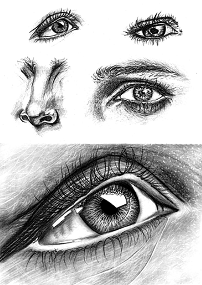 Antonia Eichler (Leistungskurs 12) / Nikolaus-von-Weis Gymnasium / Zeichnerische Übung zum Thema Portrait, Bleistift / Skizzenbuch: siehe Anhang "Antonia Eichler (Leistungskurs 12)".