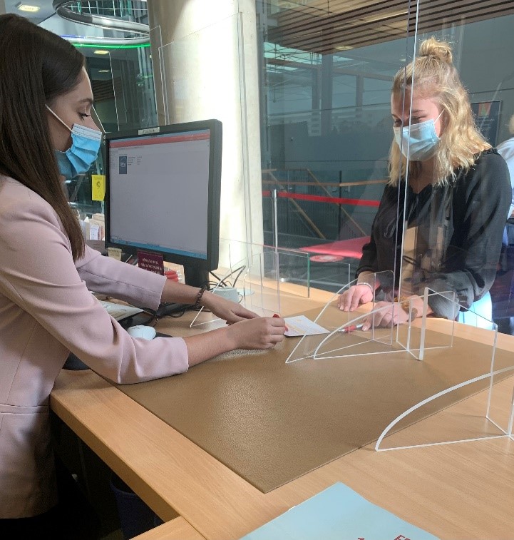 Nach Öffnung der Geschäftsstelle ging es dann auch schon los. Ich habe Kunden an den Automaten unterstützt, am Service ausgeholfen oder war bei Kundengesprächen dabei bzw. habe selbst welche geführt.