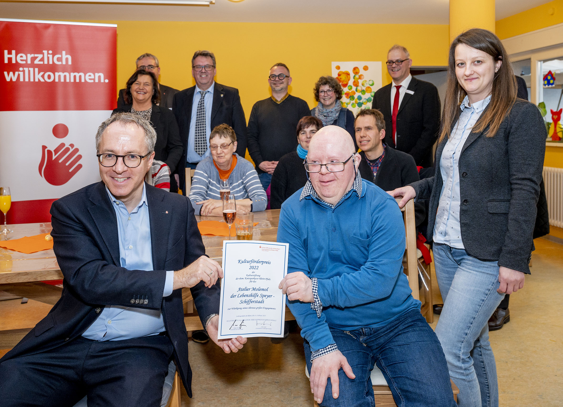 Der mit 2.500 Euro dotierte Kulturförderpreis 2022 geht an das Atelier „Molemol“* der Lebenshilfe Speyer-Schifferstadt. Das teilt die Kulturstiftung der ehemaligen Kreissparkasse Rhein-Pfalz mit. Mit der Auszeichnung würdigt die Sparkassenstiftung das umfangreiche und vielfältige Kreativangebot des Förderateliers für Menschen mit eingeschränkten kognitiven Fähigkeiten.